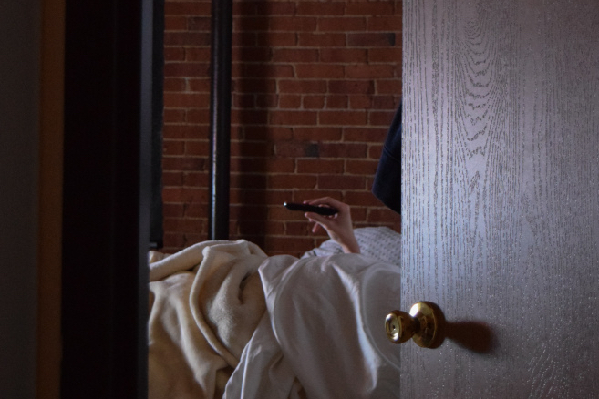 The day is broken up in seven sounds. From the sheets flying off the bed to the first sip of coffee to the faint audio of the tv at night. These sounds represent a completed step in the day. Wake up, coffee, go to work, come home, made dinner, do homework, relax, and go to bed. Repeat.